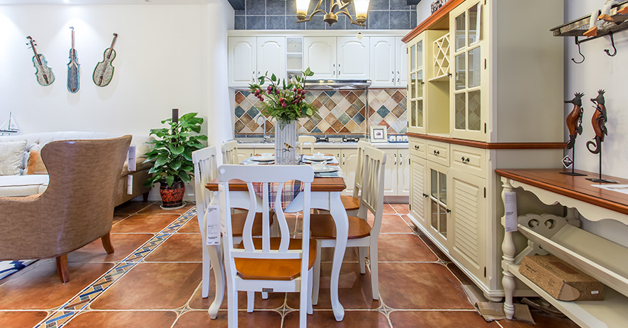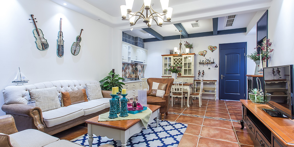 地中海风格以蓝色为主,极具亲和力,在色调和组合搭配上大气怡人。在造型上给人以延伸般的透视感,以蓝色、白色、黄色为主调将海洋元素应用到家居设计中,给人以浪漫的感觉。蔚蓝色的浪漫情怀,海天一色、艳阳高照的纯美自然。